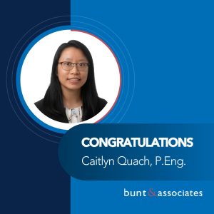 A huge congratulations to Bunt’s Caitlyn Quach, who has officially earned her P.Eng. designation!