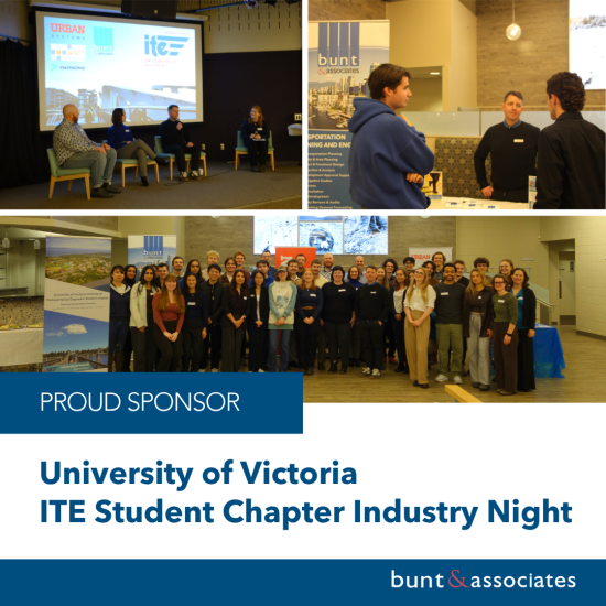 Congratulations to the University of Victoria (UVic) ITE Student Chapter for hosting their first Industry Night with great success! Bunt & Associates was proud to be the Gold Sponsor of this inaugural event on November 6.